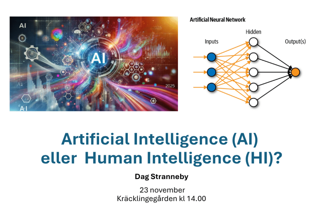 Dag Stranneby (professor emeritus Örebro universitet) kommer och föreläser om AI.